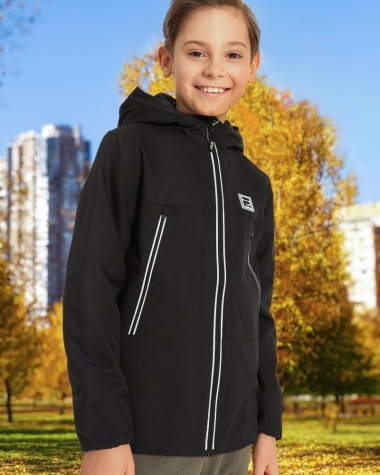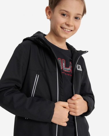 Thiết Kế Thể Thao Thời Thượng: Với gam màu đen kinh điển, kết hợp cùng các chi tiết sọc trắng tinh tế và logo Fila nổi bật, chiếc áo khoác này dễ dàng "mix & match" với mọi trang phục. Mũ trùm đầu tiện lợi giúp bảo vệ bé khỏi gió lạnh hoặc ánh nắng gay gắt.