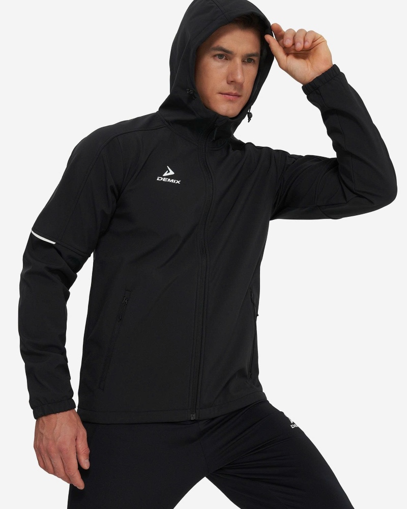 ÁO KHOÁC SOFTSHELL NAM DEMIX CÓ MŨ – CHỐNG GIÓ & GIỮ ẤM TẬP LUYỆN