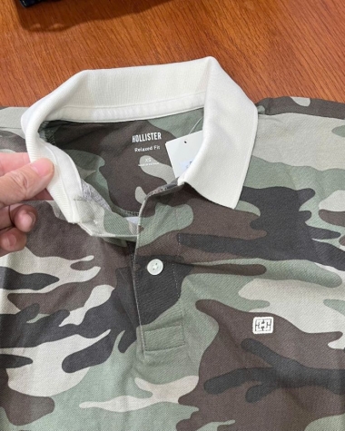 Sự kết hợp hoàn hảo giữa nét phong trần của họa tiết rằn ri (Camo) và vẻ lịch sự của chiếc cổ áo trắng tương phản. Áo Polo Hollister chất vải cá sấu mang đến phong cách năng động, trẻ trung nhưng không kém phần chỉn chu cho phái mạnh.