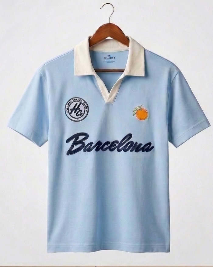 Thiết kế tinh tế: * Dòng chữ Barcelona được thêu đắp nổi (applique) tỉ mỉ, tạo điểm nhấn ấn tượng trước ngực.