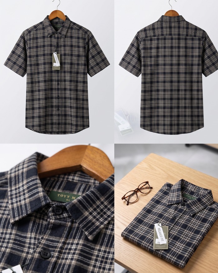 Thiết kế: Tay ngắn trẻ trung, túi ngực tinh tế cùng hàng cúc áo được gia công tỉ mỉ, tạo điểm nhấn lịch lãm.