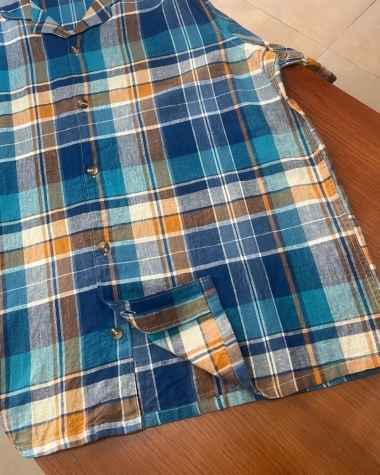 Thiết kế sọc caro ấn tượng: Họa tiết caro với các gam màu xanh dương, nâu, cam và trắng được phối hợp hài hòa, tạo nên vẻ ngoài tươi mới, cuốn hút.