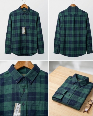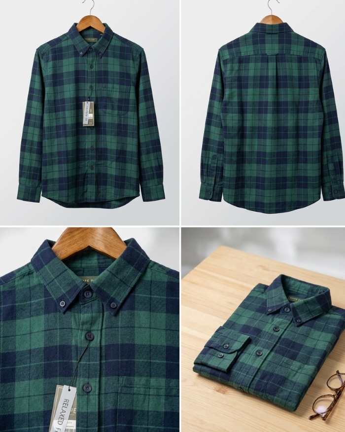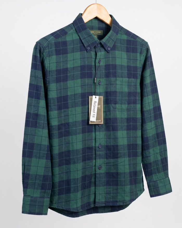 Họa tiết: Kẻ caro phối màu xanh lá và xanh navy hiện đại, dễ dàng phối cùng quần jeans, quần tây hoặc kaki.