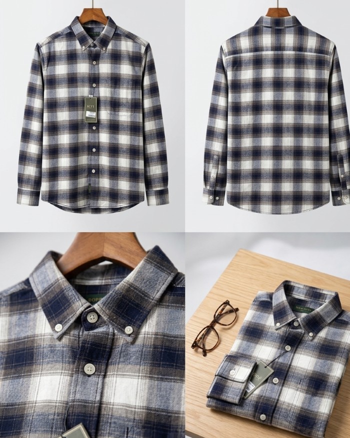 Họa tiết: Kẻ caro phối màu tinh tế (Xanh Navy - Trắng - Nâu), dễ dàng phối cùng quần Jean, Chinos hoặc mặc khoác ngoài áo thun.