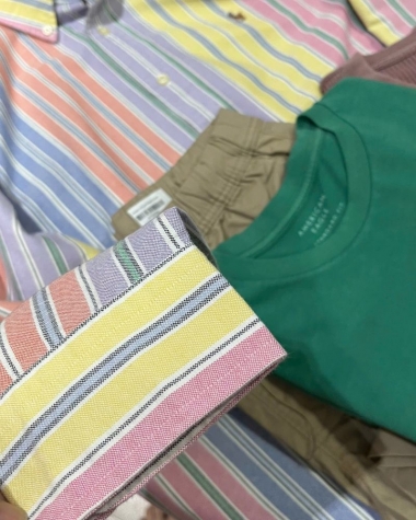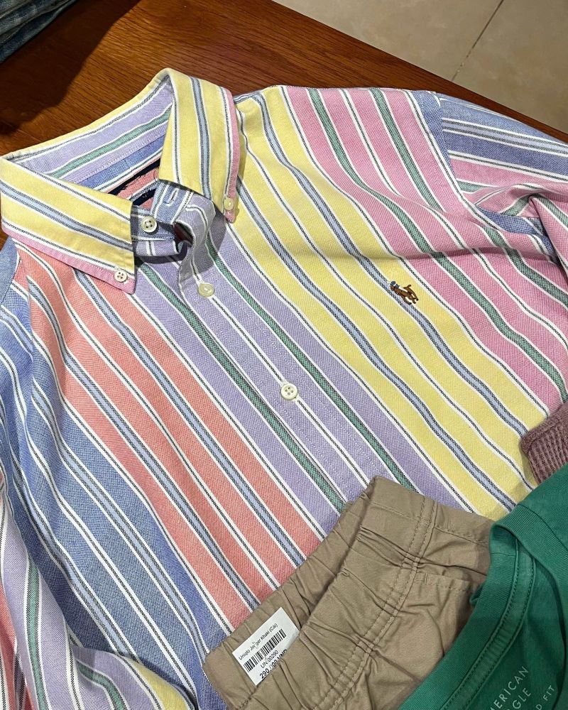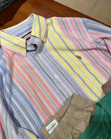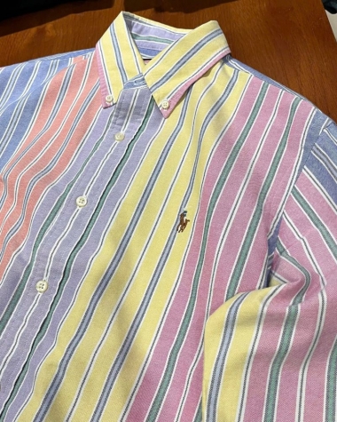 Màu sắc: Đa Sắc (Multi-Stripe) – Kết hợp các sọc màu Pastel (xanh dương, hồng, vàng, xanh lá) tạo nên vẻ ngoài cực kỳ nổi bật, tươi mới và mang đậm phong cách Preppy/Ivy League cổ điển.