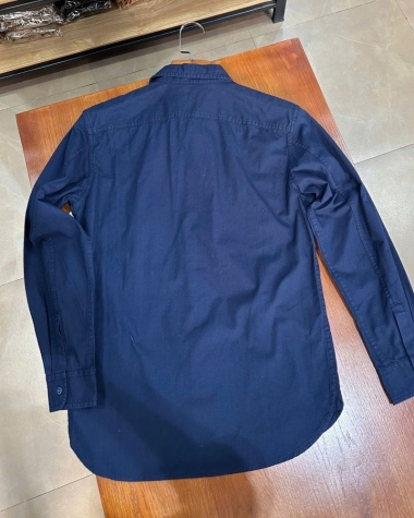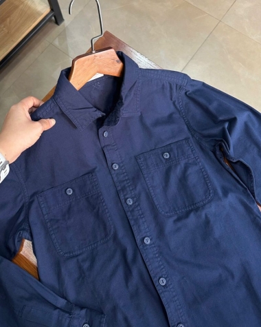 Thiết kế: 2 túi ngực, cổ bẻ, tay dài bo nút