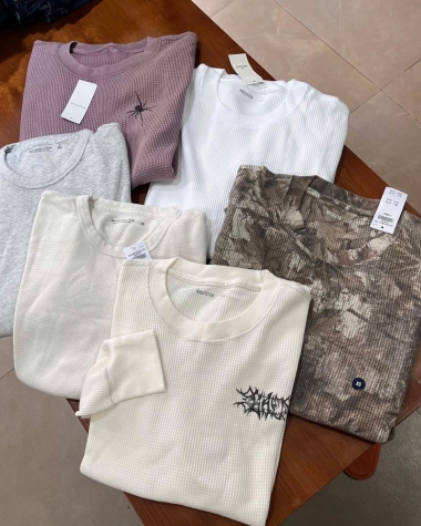 Áo được làm từ chất liệu vải Waffle (dệt tổ ong) siêu mềm mại, mang lại cảm giác thoải mái tối đa và khả năng giữ ấm nhẹ nhàng, rất lý tưởng cho thời tiết se lạnh.