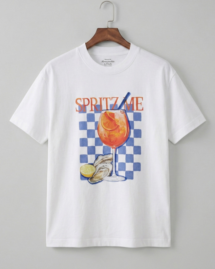 Nâng tầm tủ đồ mùa hè của bạn với chiếc áo thun Abercrombie & Fitch dòng Oversize đặc trưng. Lấy cảm hứng từ những buổi chiều thư giãn bên ly cocktail Spritz và hàu tươi, họa tiết graphic trên áo không chỉ là một hình in, mà là một lời mời gọi tận hưởng cuộc sống.