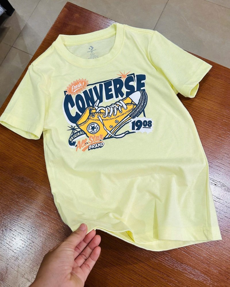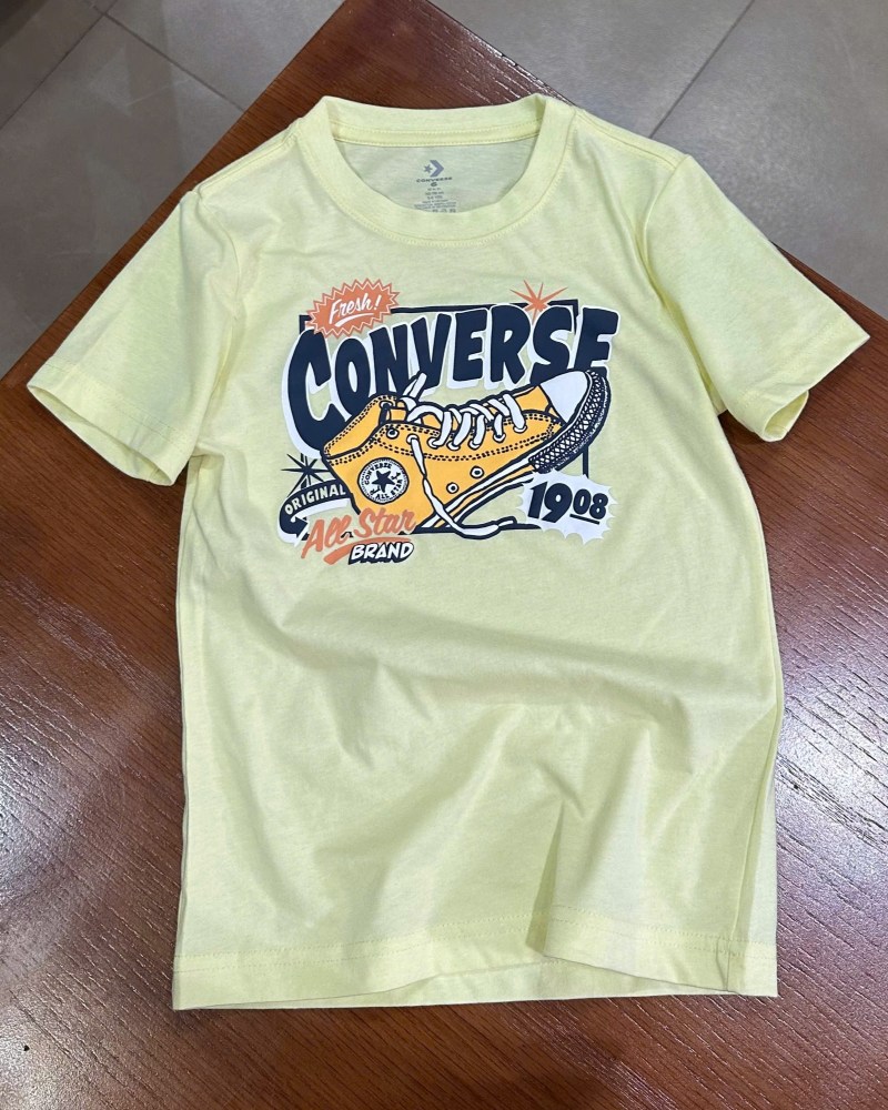 Mang phong cách retro đầy cá tính, chiếc áo thun Converse bé trai màu vàng nhạt này là lựa chọn lý tưởng cho các bé yêu thích sự độc đáo và năng động. Với họa tiết in hình đôi giày Chuck Taylor All Star kinh điển, chiếc áo không chỉ là một item thời trang mà còn là biểu tượng của tinh thần tự do, phóng khoáng.