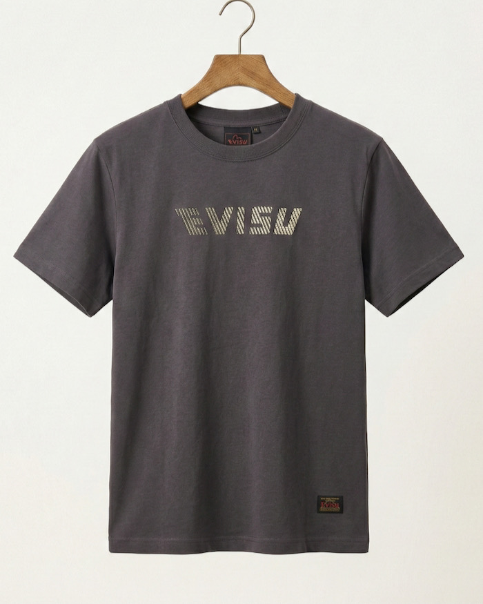 Thiết kế Logo: Dòng chữ "EVISU" được in/thêu cách điệu với các đường sọc ngang tinh tế, tạo hiệu ứng thị giác mạnh mẽ và sang trọng.
