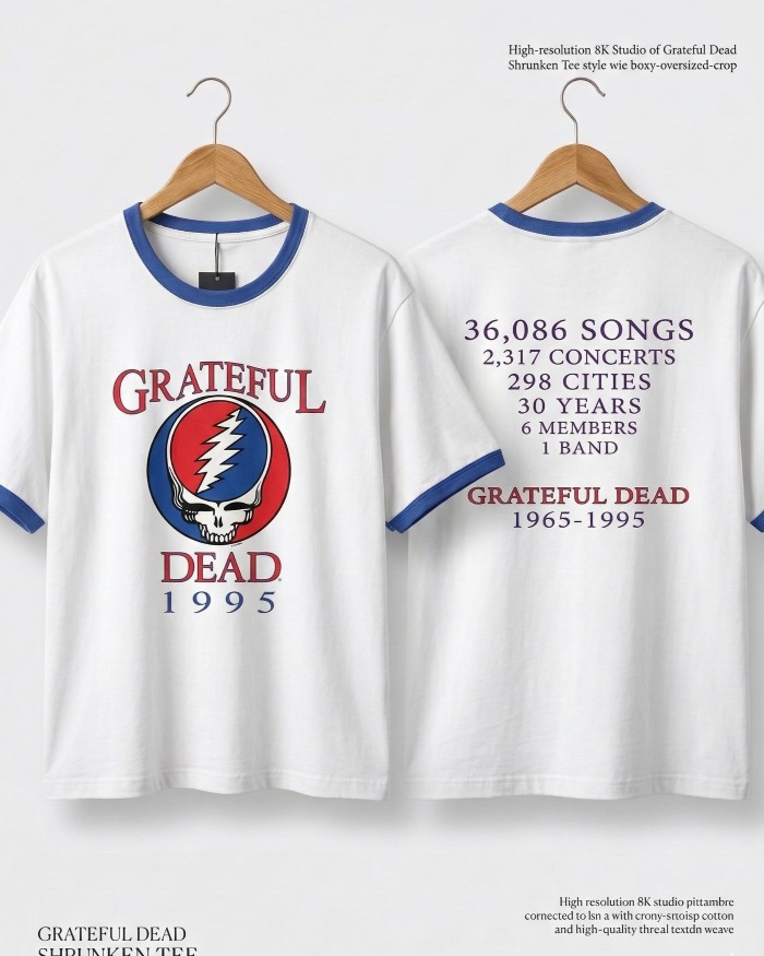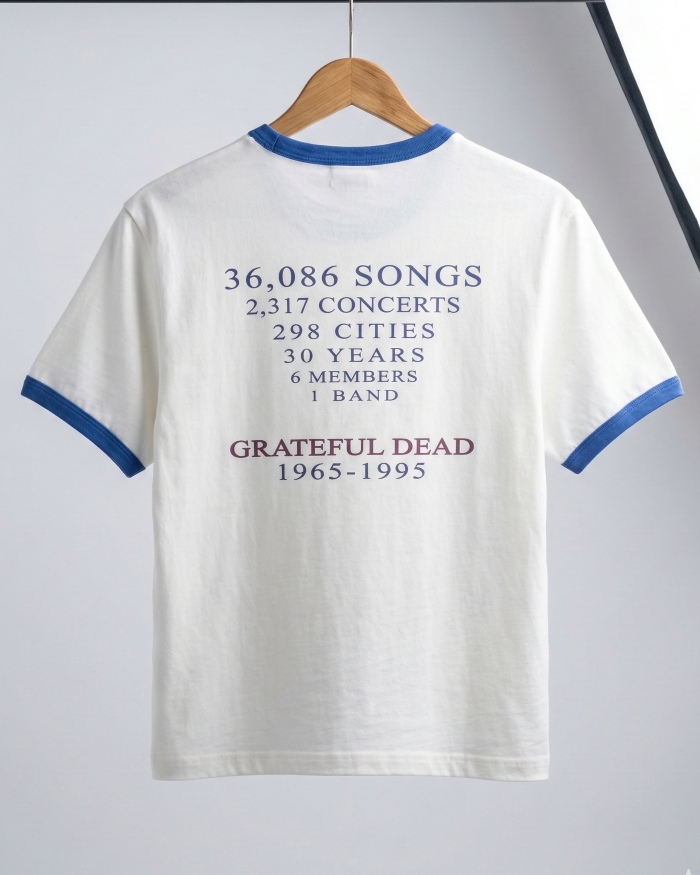 Thiết kế: Mặt trước in logo Grateful Dead 1995 biểu tượng. Mặt sau ấn tượng với thông số kỷ niệm: "36,086 Songs, 2,317 Concerts..." - một món đồ không thể thiếu cho những tín đồ yêu thích sự hoài cổ.