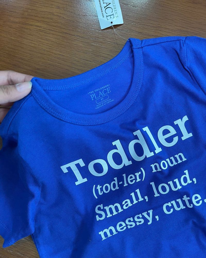 Chào mừng bạn đến với bộ sưu tập áo thun mới nhất của The Children's Place - thương hiệu thời trang trẻ em hàng đầu từ Mỹ! Chiếc áo thun bé trai màu xanh dương tươi sáng với dòng chữ "TODDLER" (Bé chập chững) cùng định nghĩa hài hước "small, loud, messy, cute" (nhỏ, ồn ào, bừa bộn, đáng yêu) chắc chắn sẽ khiến các bố mẹ bật cười và muốn sắm ngay cho bé yêu của mình.