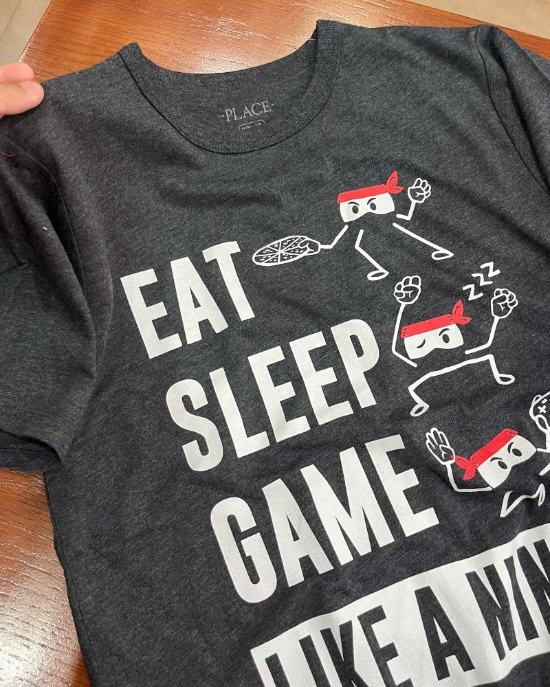 Họa tiết: In chữ "EAT - SLEEP - GAME LIKE A NINJA"
