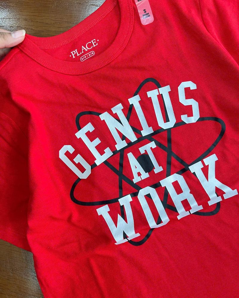 Hãy để bé trai của bạn tự tin thể hiện sự thông minh và sáng tạo với chiếc áo thun The Children's Place màu đỏ nổi bật này. Dòng chữ "GENIUS AT WORK" được in nổi bật, có nghĩa là "Thiên tài đang làm việc", mang đến một thông điệp vô cùng tích cực và hài hước. Đây không chỉ là một chiếc áo, mà còn là lời động viên tinh thần, giúp bé luôn cảm thấy tự hào về bản thân.