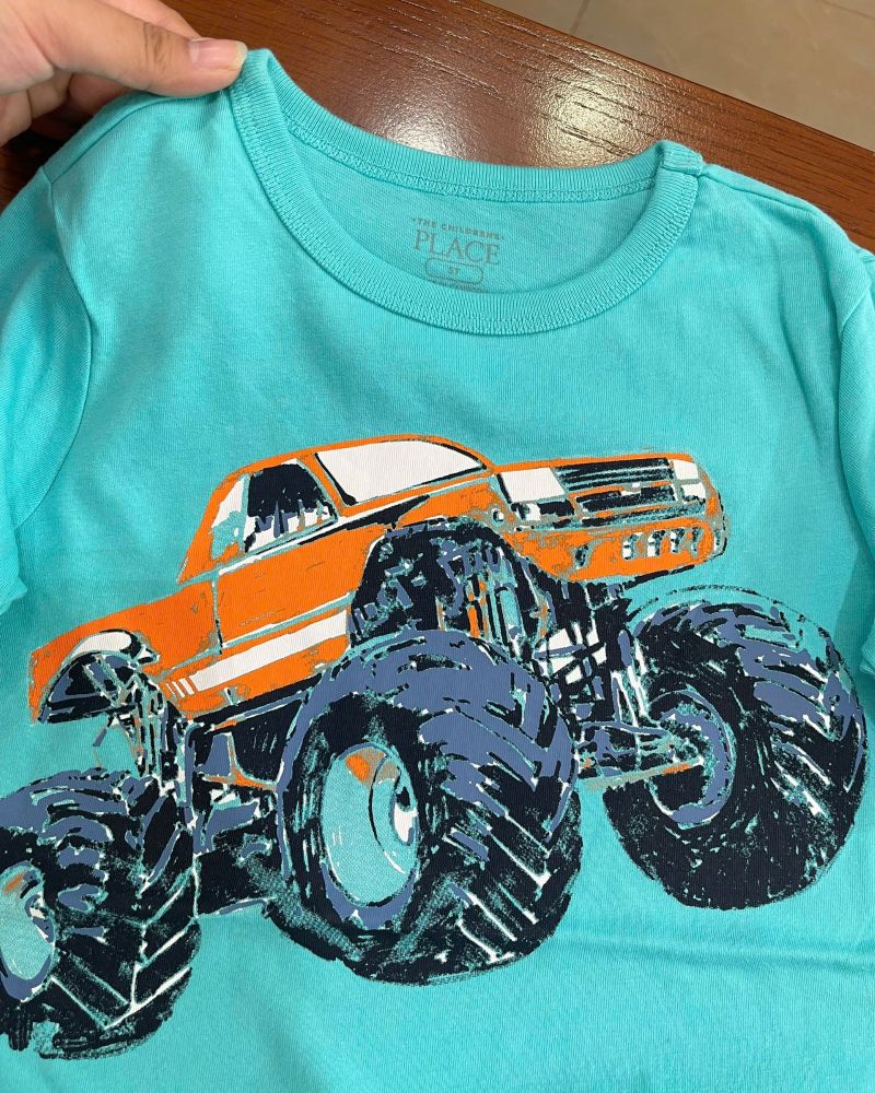 Hãy để bé trai của bạn thỏa sức khám phá và thể hiện cá tính mạnh mẽ với chiếc áo thun The Children's Place màu xanh ngọc tươi sáng này. Nổi bật trên nền áo là hình in xe địa hình (monster truck) cực ngầu, chắc chắn sẽ khiến bé vô cùng thích thú. Đây không chỉ là một chiếc áo, mà còn là nguồn cảm hứng về sự phiêu lưu và năng động cho các bé.