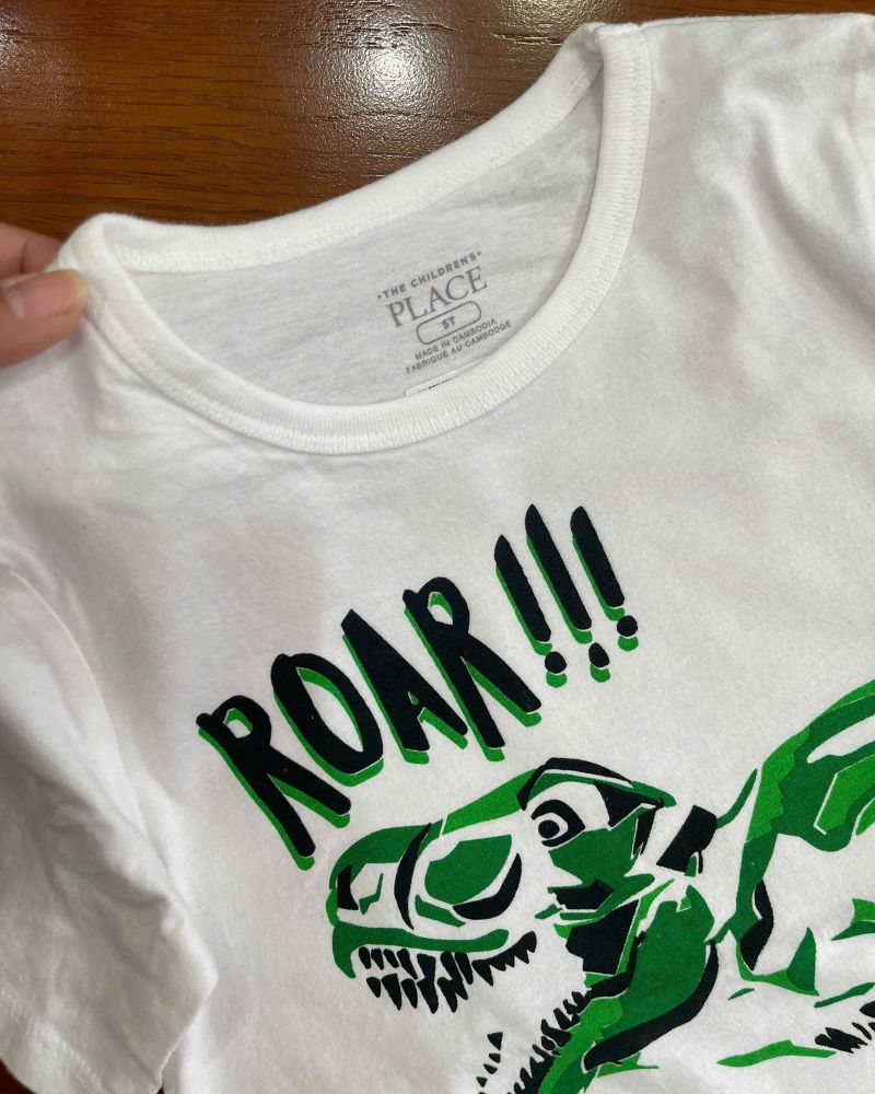 Hãy để bé trai của bạn thể hiện cá tính mạnh mẽ với chiếc áo thun The Children's Place màu trắng tinh khôi này. Họa tiết khủng long đầy ấn tượng cùng dòng chữ "ROAR!!!" nổi bật sẽ khiến bé vô cùng thích thú. Đây không chỉ là một chiếc áo, mà còn là tuyên ngôn về sự năng động và khám phá của các bé.
