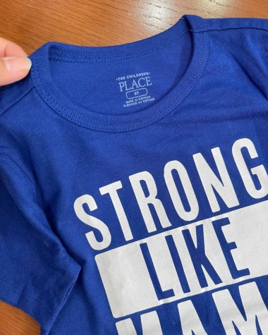 Chào mừng bạn đến với bộ sưu tập áo thun mới nhất của The Children's Place - thương hiệu thời trang trẻ em hàng đầu từ Mỹ! Chiếc áo thun bé trai màu xanh dương tươi sáng với dòng chữ "STRONG LIKE MAMA" (Mạnh mẽ như mẹ) chắc chắn sẽ là một cách đáng yêu để bé thể hiện tình cảm và sự ngưỡng mộ dành cho mẹ của mình.