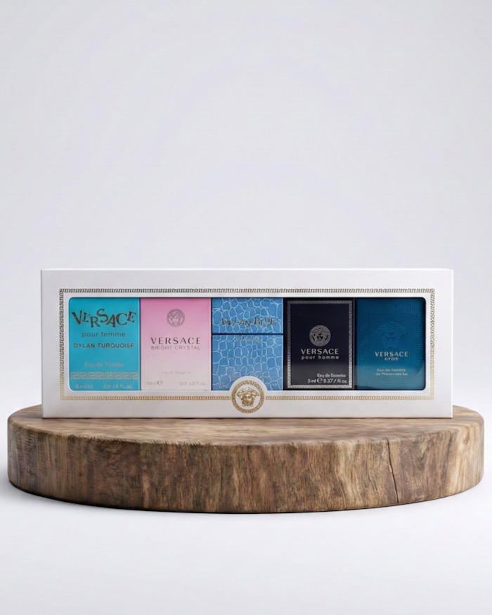 Sở hữu trọn bộ sưu tập những mùi hương lừng lẫy nhất của Versace trong một thiết kế hộp trắng viền vàng sang trọng. Set sản phẩm là sự kết hợp hoàn hảo giữa các tone mùi nam và nữ, cực kỳ lý tưởng để làm quà tặng hoặc tự thưởng cho bản thân.