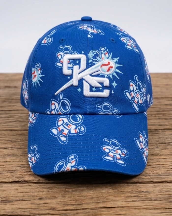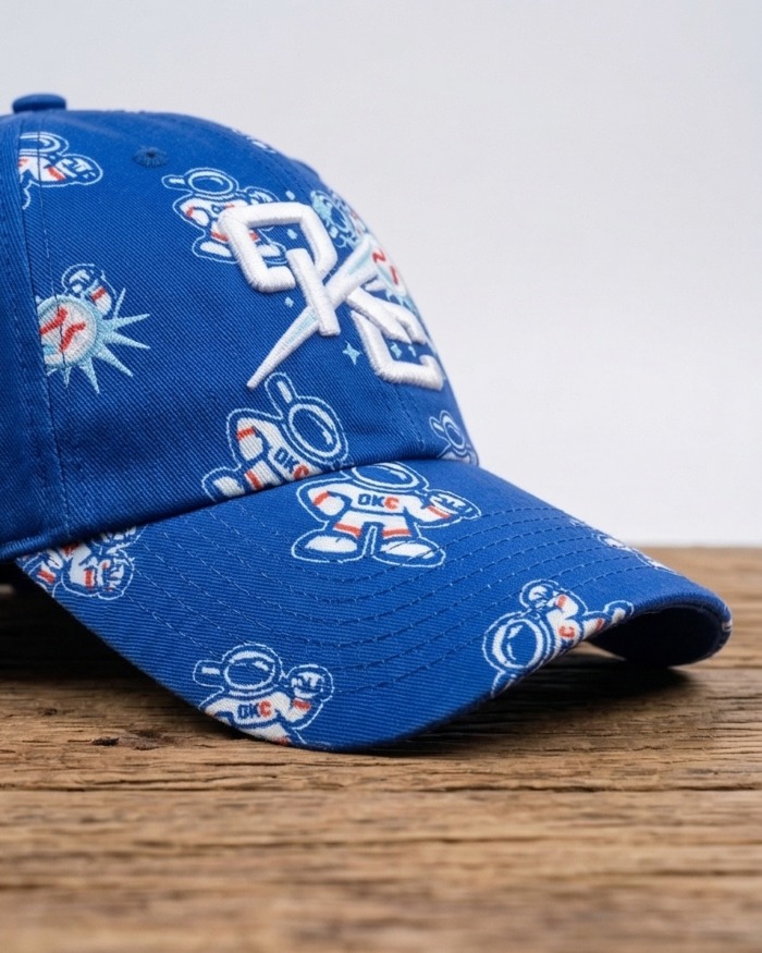 Thiết kế độc đáo: Toàn bộ thân nón được in họa tiết những chú phi hành gia nhỏ nhắn, sinh động trên nền xanh royal cá tính. Điểm nhấn là logo thêu 3D nổi khối cực kỳ sắc nét ở mặt trước, kết hợp hình ảnh quả bóng chày cách điệu, mang lại vẻ ngoài thể thao và hiện đại.