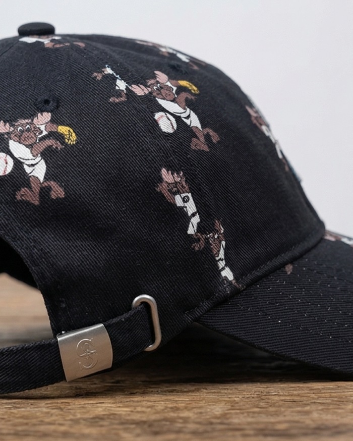 Thiết kế bản quyền: Sản phẩm nằm trong bộ sưu tập đội bóng chày nổi tiếng Seattle Mariners. Điểm nhấn đặc biệt là họa tiết Mariner Moose (chú nai sừng tấm) được in tràn toàn thân nón với nhiều tư thế chơi bóng cực kỳ đáng yêu và tinh nghịch.