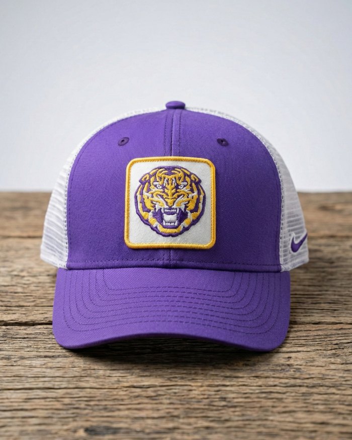 • Logo thêu tinh xảo: * Mặt trước: Patch thêu nổi bật với các biểu tượng thể thao cá tính (Logo Đại học Iowa rằn ri mạnh mẽ hoặc Logo Hổ tím ấn tượng).