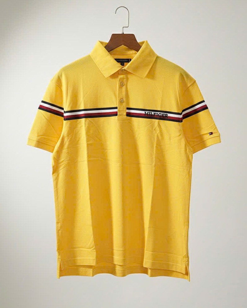 Mang phong cách trẻ trung, năng động nhưng không kém phần lịch lãm, áo polo nam Tommy màu vàng là lựa chọn lý tưởng cho những chàng trai yêu thích sự đơn giản và tinh tế. Sản phẩm thuộc dòng Regular Fit, với phom dáng vừa vặn, thoải mái, phù hợp cho nhiều dáng người.