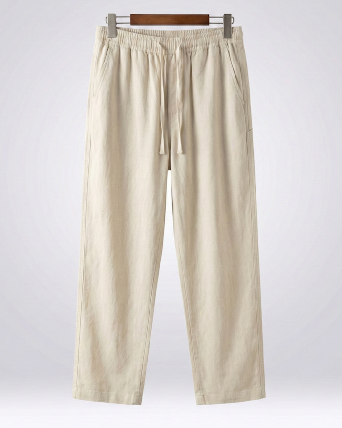 Item không thể thiếu cho những ngày hè rực nắng: Quần dài Linen Net màu Be (Beige). Tông màu trung tính thanh lịch, kết hợp chất vải lanh tự nhiên nhẹ tênh, thoáng khí. Mang lại vẻ ngoài lãng tử, sang trọng cho các quý ông dù đi làm hay đi du lịch biển.