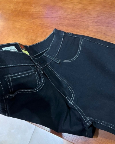 Màu sắc ấn tượng: Tông màu đen sâu (Deep Black) kết hợp độc đáo với đường chỉ nổi màu sáng (Contrast Stitching), tạo điểm nhấn cá tính và khác biệt so với các dòng jean đen thông thường.