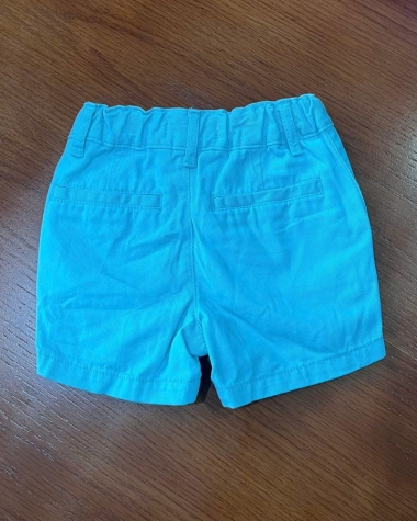 Quần short được làm từ chất liệu kaki cao cấp, mềm mại và có độ bền cao. Đặc biệt, quần có gắn thẻ "Stretch Fabric" (vải co giãn), giúp bé thoải mái chạy nhảy, nô đùa mà không lo gò bó. Lưng quần có dây thun co giãn, dễ dàng điều chỉnh, phù hợp với mọi vóc dáng của bé. Màu xanh nhạt tươi sáng, thời trang, dễ dàng kết hợp với nhiều loại trang phục khác.