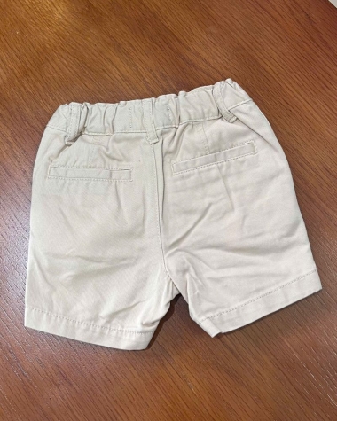 Quần short được làm từ chất liệu kaki cao cấp, mềm mại và có độ bền cao. Đặc biệt, quần có gắn thẻ "Stretch Fabric" (vải co giãn), giúp bé thoải mái chạy nhảy, nô đùa mà không lo gò bó. Lưng quần có dây thun co giãn, dễ dàng điều chỉnh, phù hợp với mọi vóc dáng của bé. Màu kem nhạt trung tính, thời trang, dễ dàng kết hợp với nhiều loại trang phục khác.