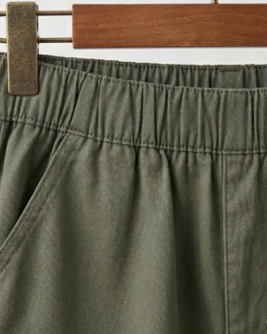 Lưng thun (Cạp thun): Co giãn linh hoạt, giúp bé dễ dàng mặc vào/cởi ra và không gây lằn bụng khi ngồi hoặc chạy nhảy.