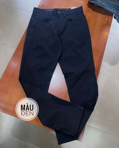 Thiết kế 5 Túi (5-Pocket Styling): Form dáng cứng cáp, nam tính giống quần Jeans nhưng mềm mại hơn nhiều. Màu đen tuyền (Jet Black) mang lại vẻ ngoài sang trọng, dễ dàng che khuyết điểm và "hack" dáng thon gọn.