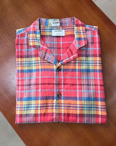 Set Áo Sơ Mi Ngắn Tay Linen Sọc của Old Navy & Áo Cổ Tròn Hollister Màu Nâu (Big Size)