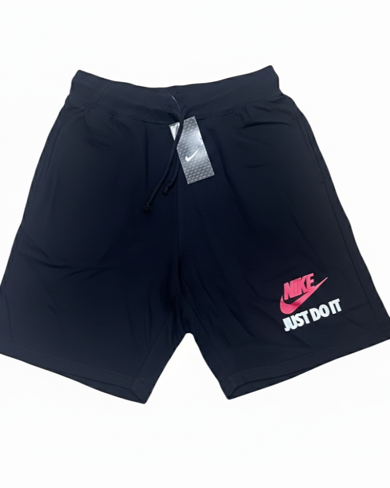 Điểm nhấn: Logo NIKE và dòng chữ JUST DO IT in nổi bật màu hồng/đỏ cá tính, tạo vẻ ngoài khỏe khoắn, thời trang.
