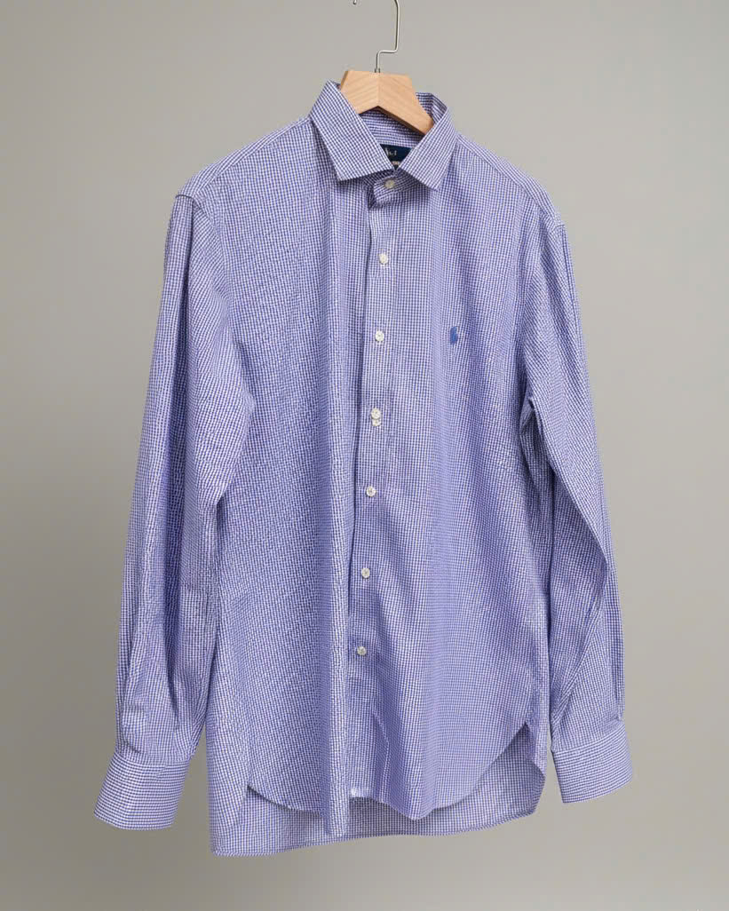 Chiếc áo sơ mi Ralph Lauren tay dài này mang họa tiết Gingham (caro nhí) tinh tế, với sự kết hợp hài hòa giữa màu Tím Than/Navy Đậm và Trắng. Sự pha trộn màu sắc này tạo ra một tông màu sâu, lịch lãm, rất dễ phối đồ và phù hợp cho mọi dịp, đặc biệt là phong cách Business Casual.