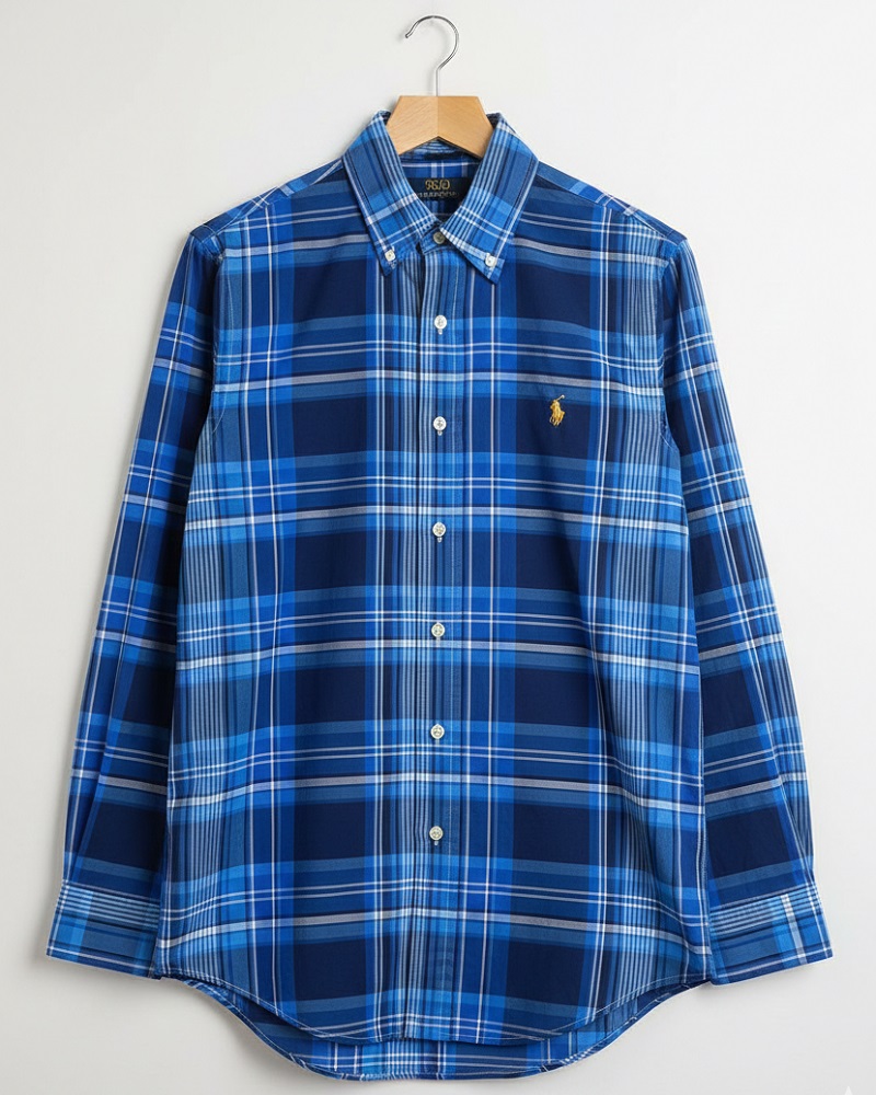 Chiếc áo sơ mi Ralph Lauren tay dài này nổi bật với họa tiết Plaid (caro lớn) với các sắc độ xanh dương đậm, xanh coban và trắng, tạo nên một vẻ ngoài năng động, mạnh mẽ và đậm chất cổ điển. Đây là lựa chọn lý tưởng cho những ai muốn thể hiện cá tính qua trang phục hàng ngày.