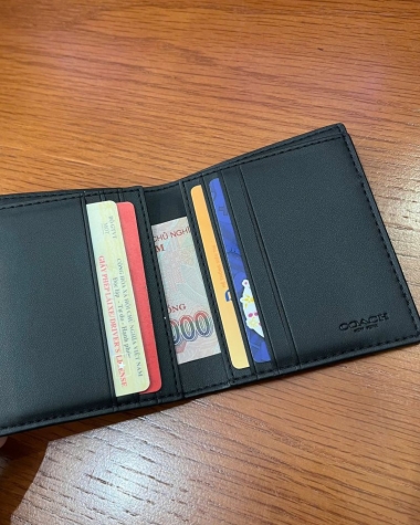 Chất liệu da thật cao cấp: Ví được chế tác từ da thật, đảm bảo độ bền vượt trội và cảm giác mềm mại khi cầm trên tay. Bề mặt da mịn màng, vân da tinh tế, thể hiện sự sang trọng và đẳng cấp của thương hiệu Coach.