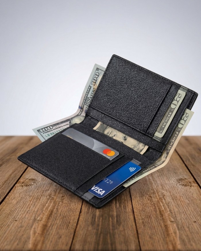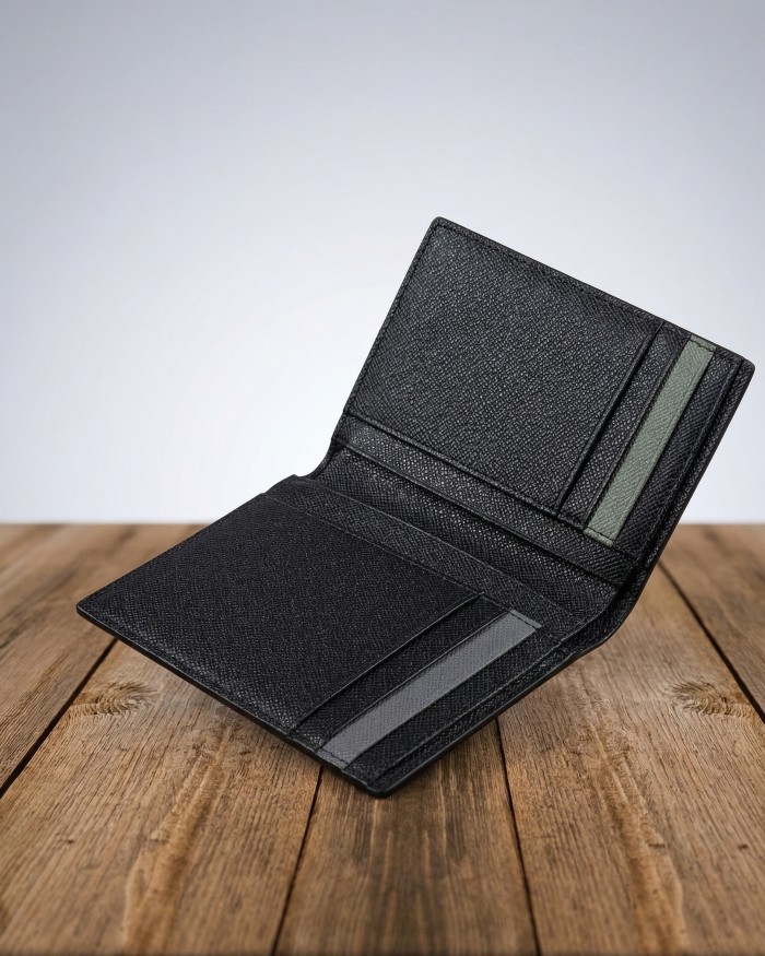 Thiết kế thông minh: Dáng ví đứng (Vertical Wallet) giúp tối ưu diện tích, dễ dàng bỏ vào túi quần trước hoặc túi áo vest mà không gây cộm.