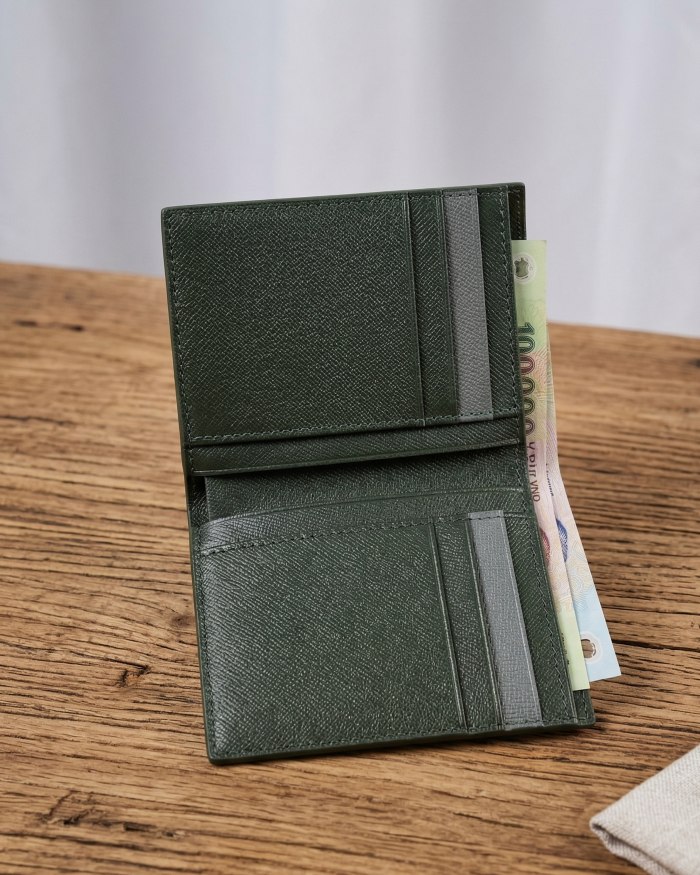 Khác với dáng ngang truyền thống, dòng ví đứng mang lại vẻ ngoài trẻ trung và cực kỳ gọn gàng khi để trong túi quần hay túi áo khoác.