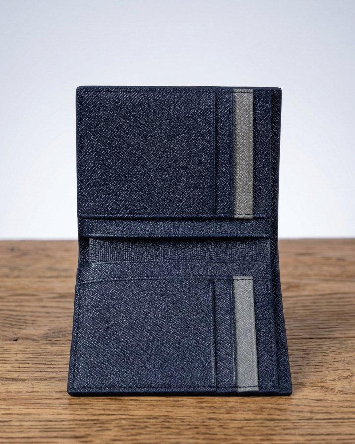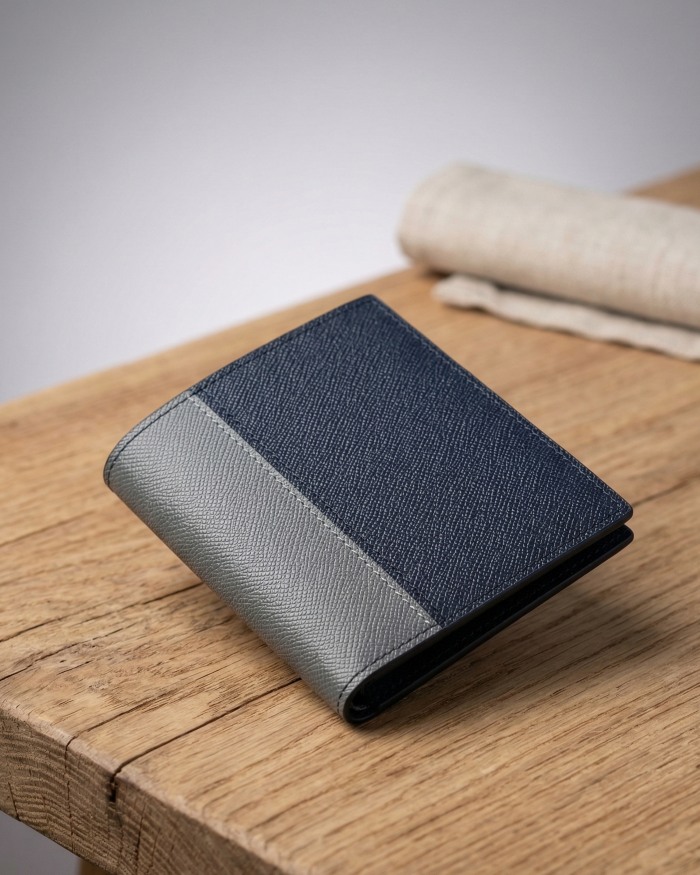 Chiếc ví đứng tại Taha.vn không chỉ là một món phụ kiện lưu trữ mà còn là điểm nhấn khẳng định phong cách của phái mạnh. Sự kết hợp độc đáo giữa tông màu Xanh đen (Navy) trầm mặc và Xám (Grey) hiện đại tạo nên một vẻ ngoài trẻ trung nhưng không kém phần sang trọng, dễ dàng kết hợp với mọi trang phục.